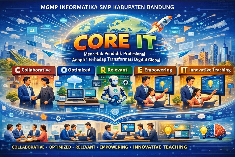 ”Mewujudkan MGMP Informatika SMP Kabupaten Bandung sebagai CORE IT dalam mencetak pendidik profesional yang adaptif terhadap transformasi digital global.”
